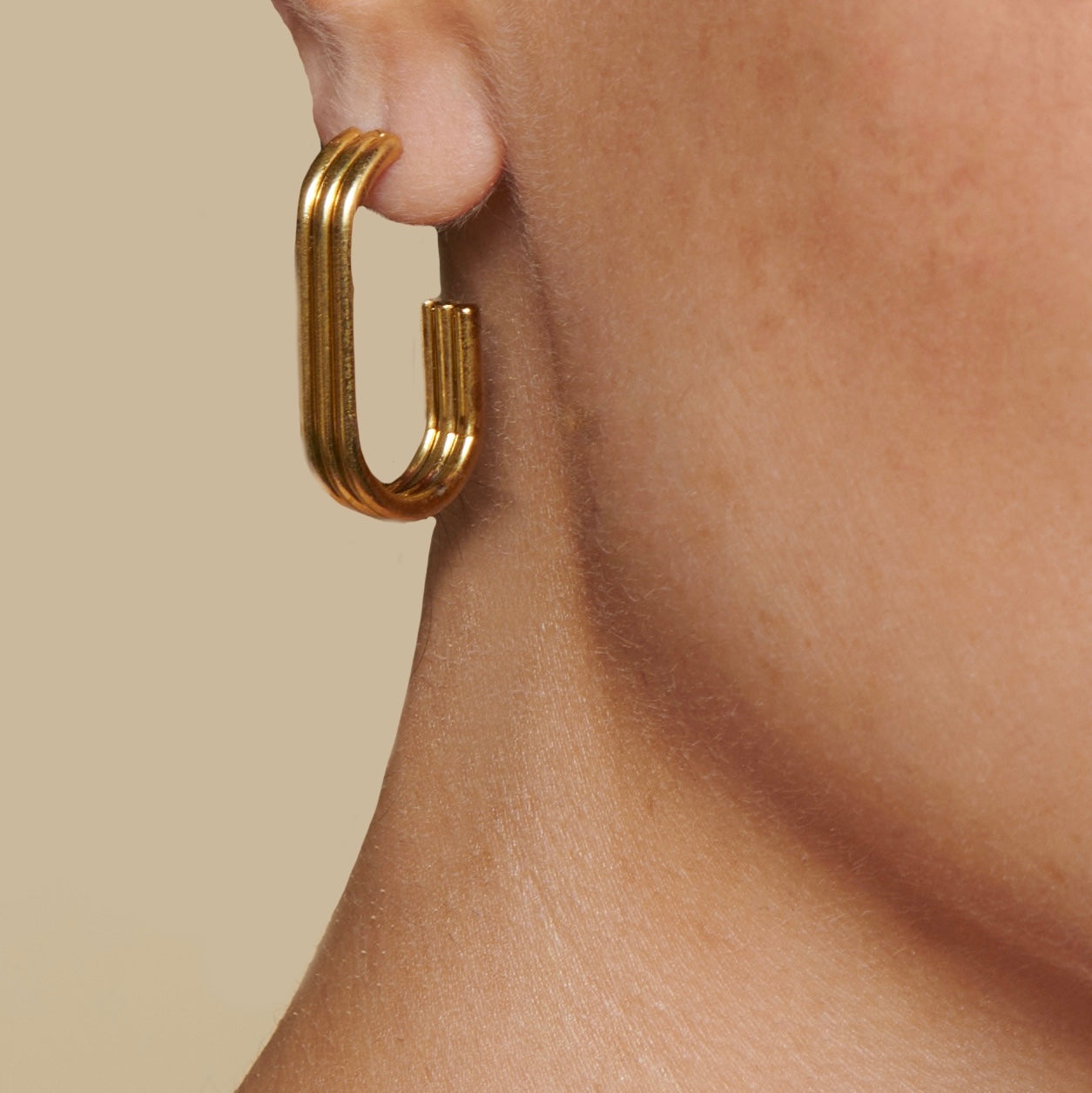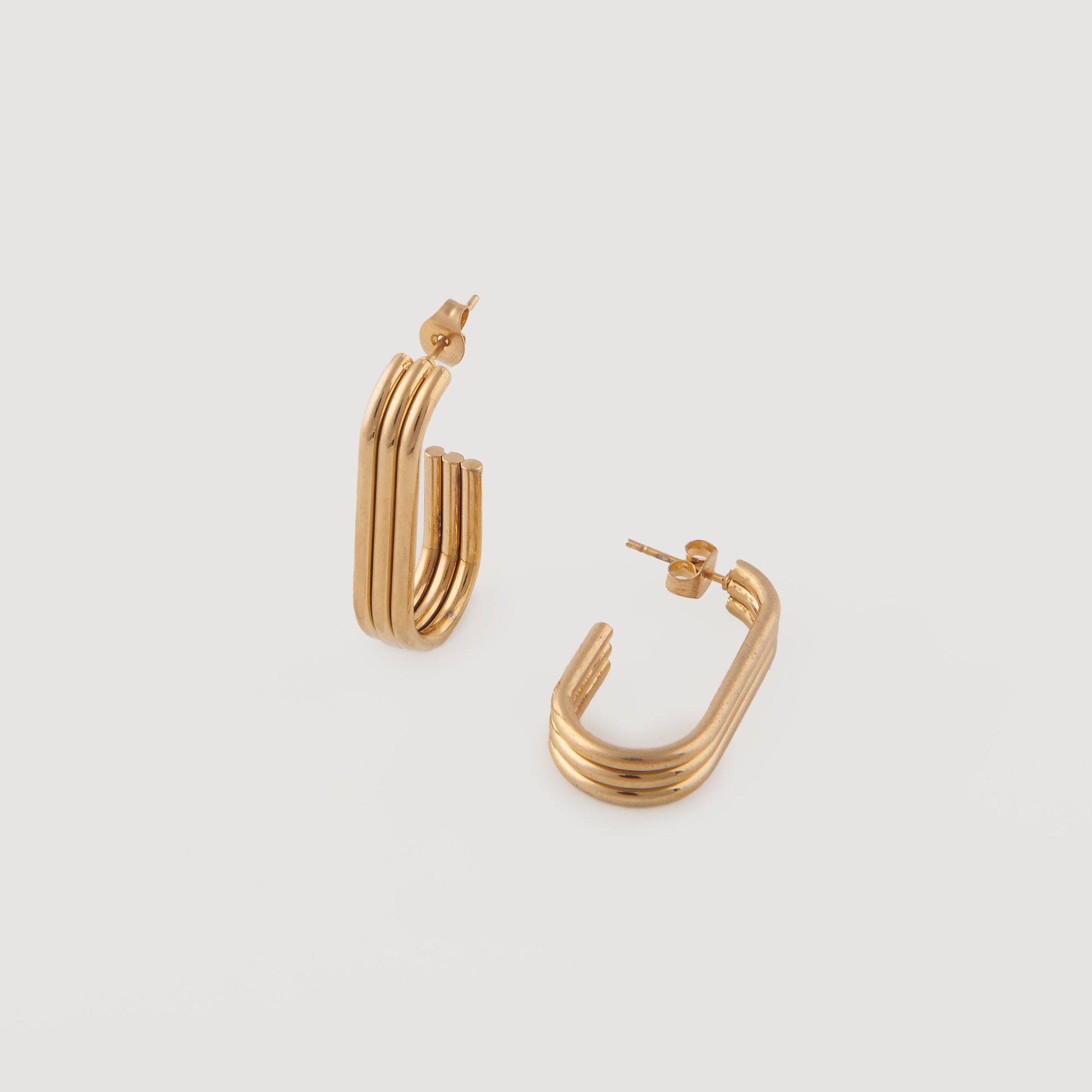 Diese eleganten Creolen namens Bay Hoops sind offen gestaltet, was ihnen einen modernen und stilvollen Look verleiht. Die Vergoldung verleiht den ovalen Ohrringen einen eleganten, warmen Glanz, der sie zu einem zeitlosen und vielseitigen Schmuckstück macht. Perfekt, um deinem Outfit einen Hauch von Eleganz und Frische zu verleihen – ideal für den Alltag oder besondere Anlässe!
