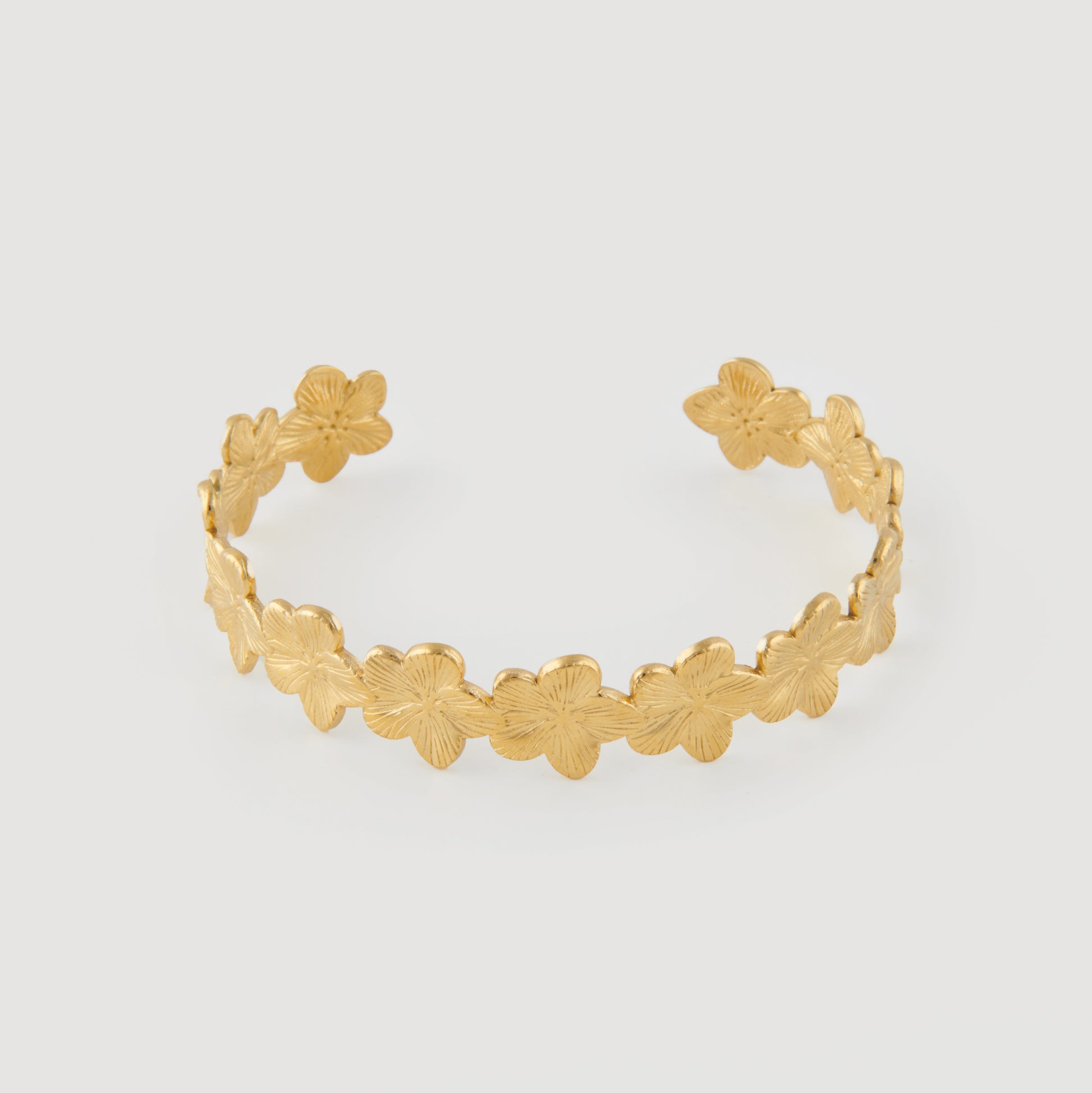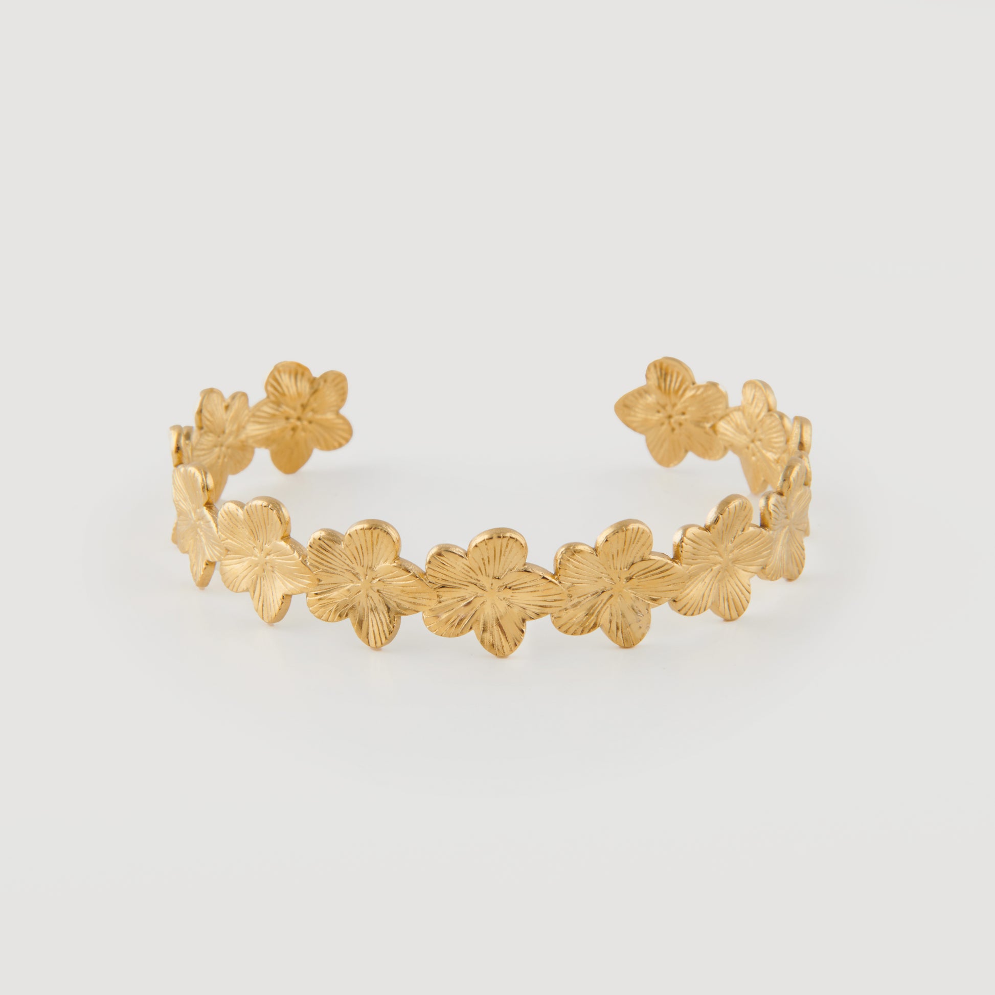 Dieser elegante Armreif erinnert an die paradiesische Schönheit Hawaiis und bringt ein tropisches Flair direkt an dein Handgelenk. Der offene Stil sorgt für eine angenehme Passform und macht das Anlegen besonders einfach. Das hochwertige Vergoldungs-Finish verleiht dem Schmuckstück einen glänzenden, langlebigen Look, der zu jedem Outfit passt – egal ob casual oder elegant. Das florale Motiv bringt Frische und Lebendigkeit in dein Styling und macht den Armreif zu einem echten Blickfang.
