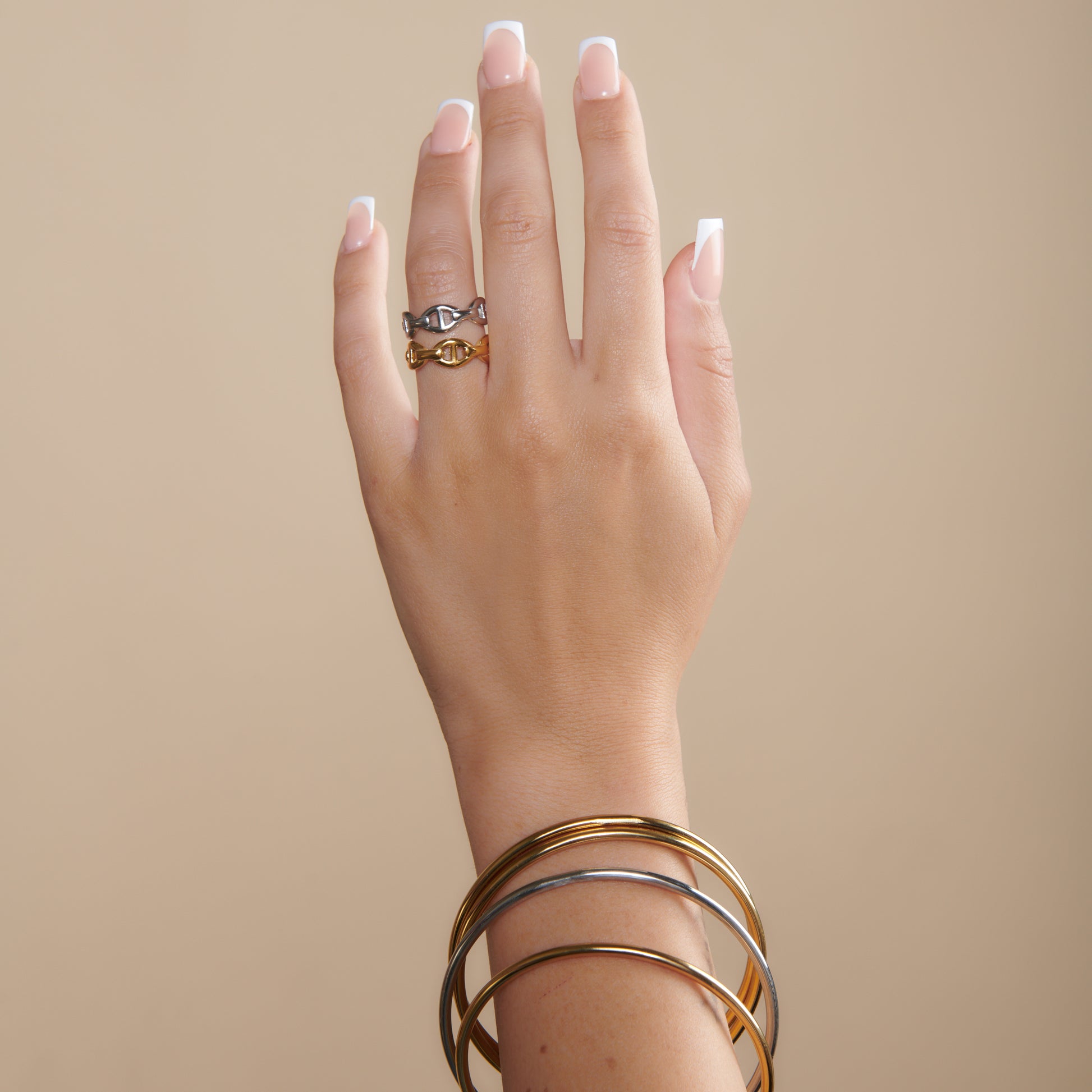 Die Armreifen Petit Classique sind das perfekte Accessoire für alle, die klassischen Stil und schlichte Eleganz lieben. Ihr minimalistisches Design machen sie zu einem vielseitigen Begleiter für jeden Anlass. Der Armreif ist hochwertig vergoldet und besticht durch seine dezente Schönheit und hochwertige Verarbeitung. Mit Petit Classique setzt du auf zeitlose Eleganz. Ein Schmuckstück, welches nie aus der Mode kommt. Kommt im 2er Set.