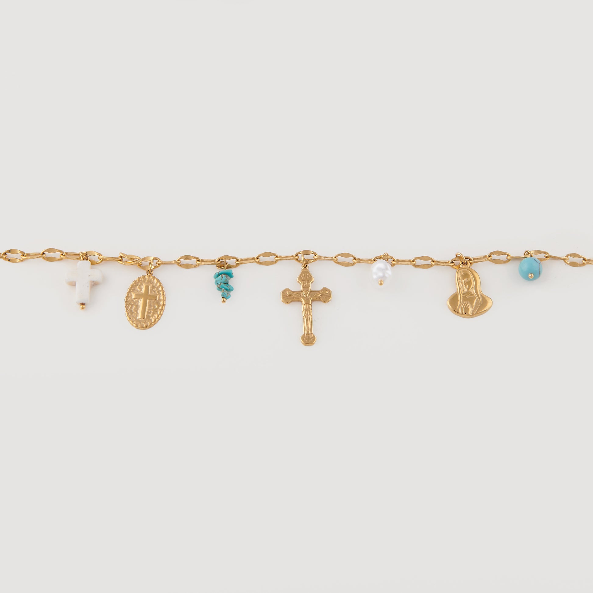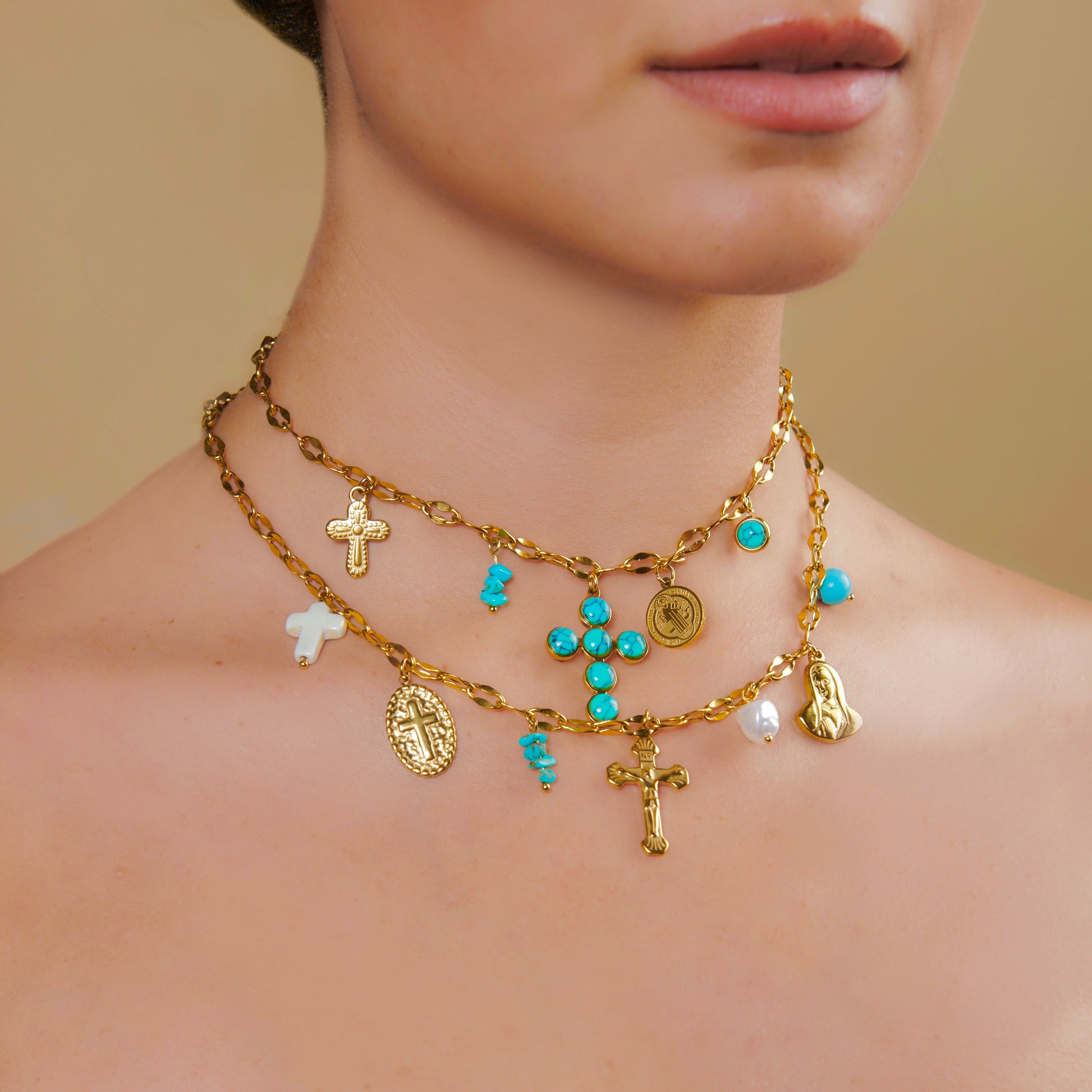 Die Kette White Saintorini ist ein elegantes und bedeutungsvolles Schmuckstück, das durch ihre liebevollen Details hervorsticht. Die Kombination aus dem Kreuz und den Perlen macht die Kette zu einem zeitlosen Accessoire, das sowohl im Alltag als auch zu besonderen Anlässen getragen werden kann. Mit ihrer harmonischen Gestaltung bringt die Kette White Saintorini eine schöne Balance zwischen Eleganz und Symbolkraft – perfekt für alle, die ihren Stil mit einer persönlichen Note unterstreichen möchten!