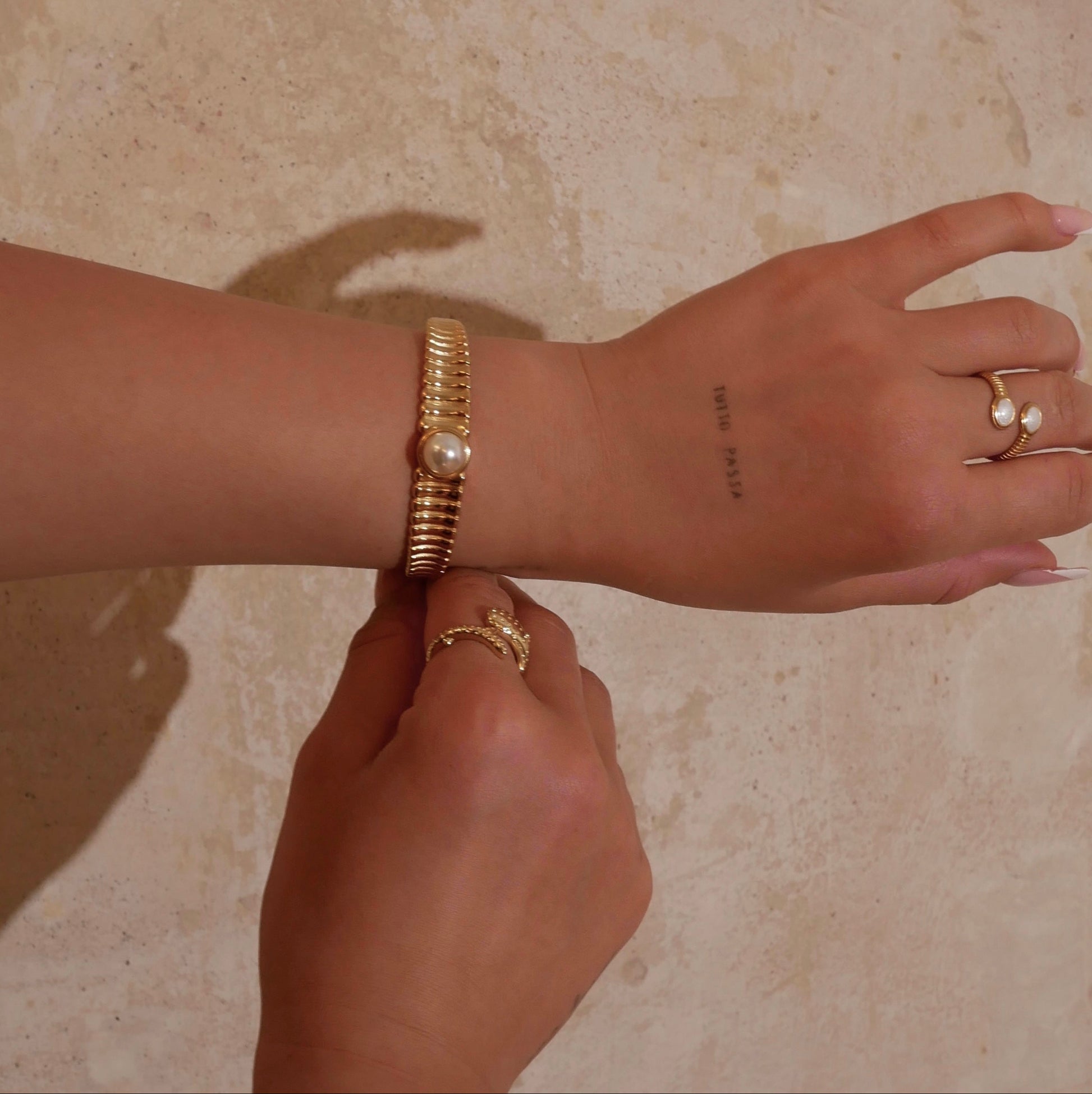 Entdecke unseren eleganten vergoldeten Inlay-Ring aus Edelstahl – ein stilvolles Accessoire, das durch seine schlichte Schönheit besticht. Der Ring besteht aus hochwertigem Edelstahl, das nicht nur widerstandsfähig gegen Kratzer und Anlaufen ist, sondern auch einen angenehmen Tragekomfort bietet. Das Design ist schlicht, aber dennoch raffiniert, da es durch seine größenverstellbare Öffnung perfekt als stilvolles Geschenk für einen lieben Menschen geeignet ist. White Saintorini & Saintorini Ring Perfect Match für dich und dein Bestie!